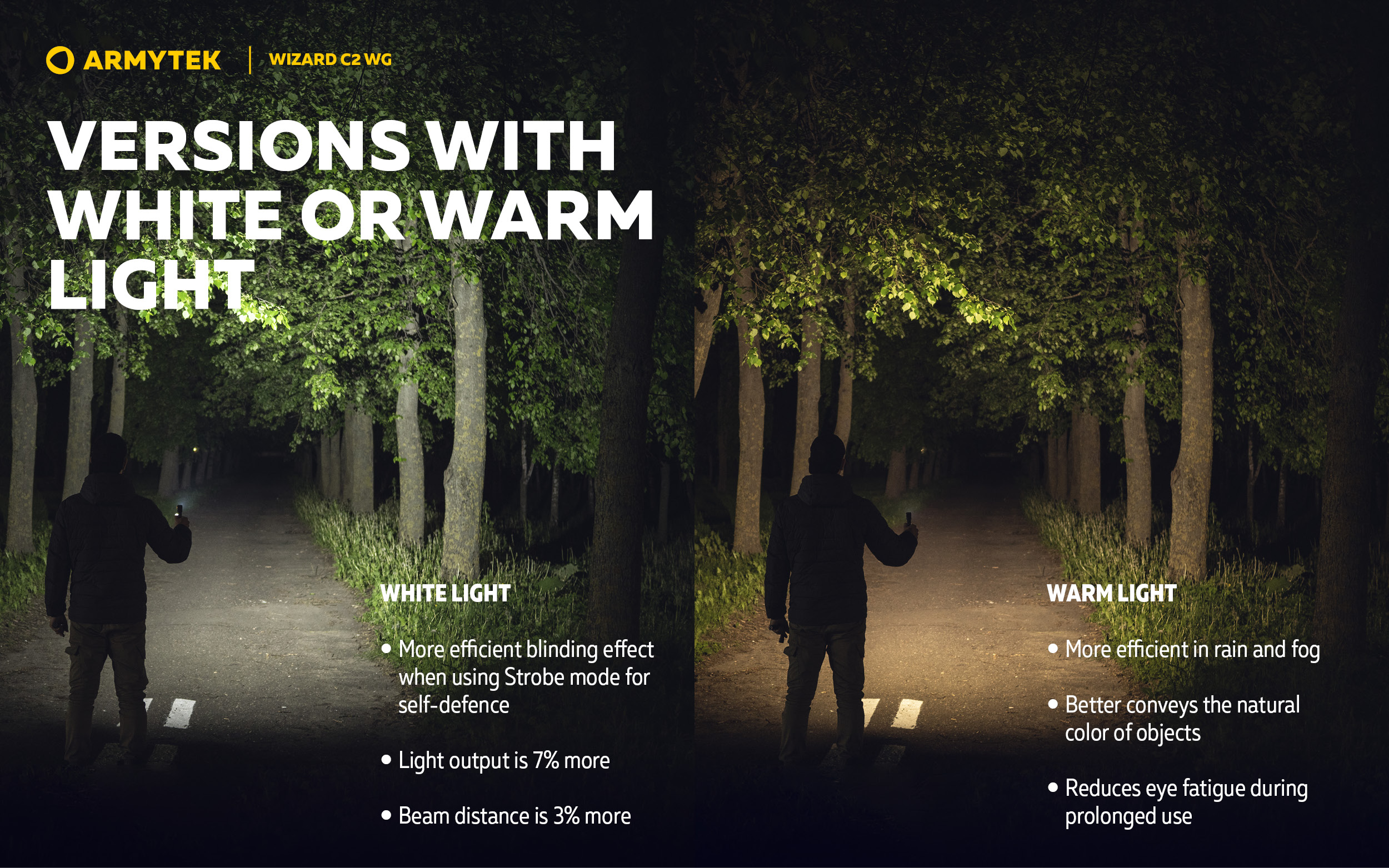 Four LEDs, two light colors, one flashlight. Wizard C2 WG is a multifunctional main or additional light source for any kind of activity.
