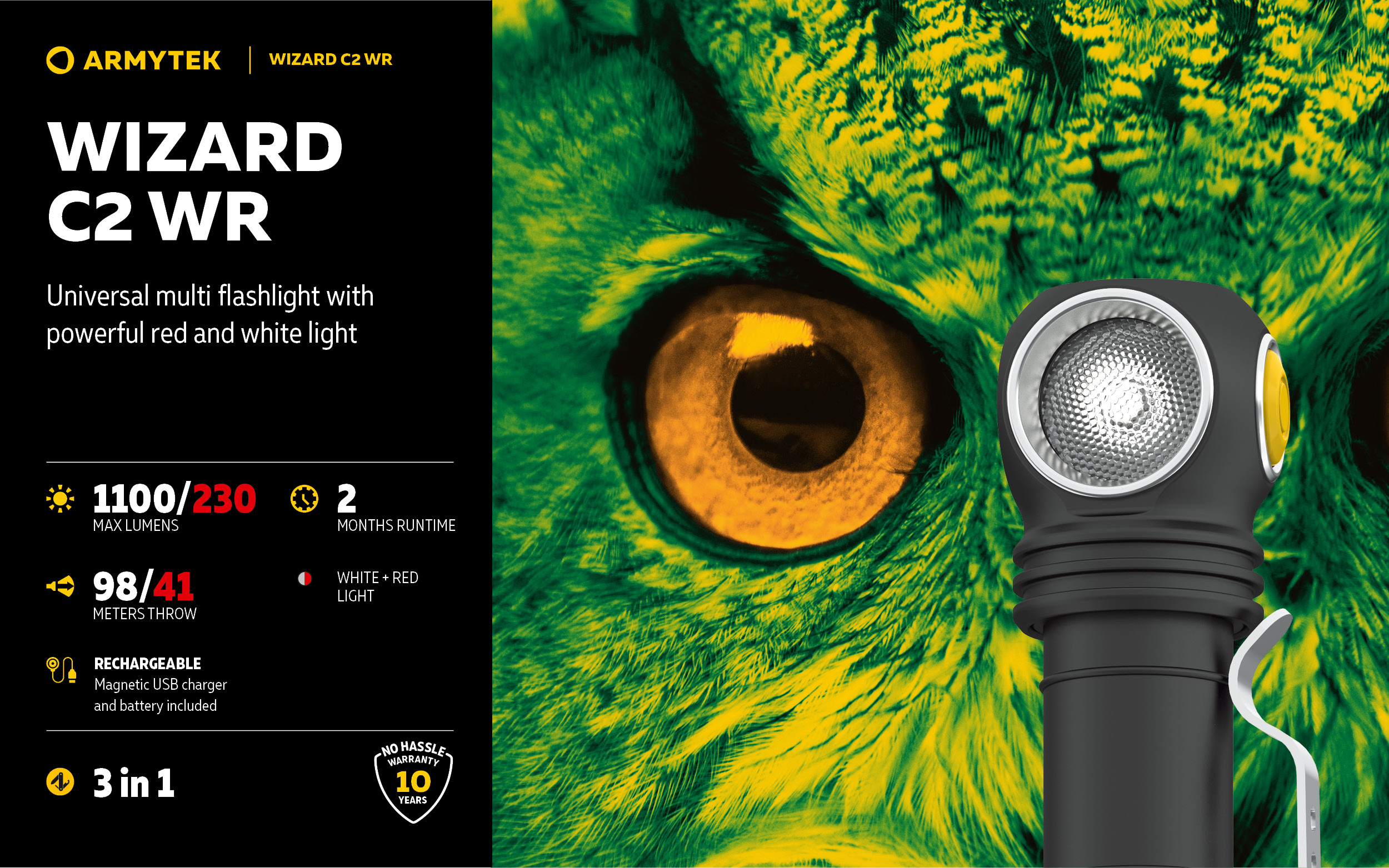 Armytek Wizard C2 WR — universal multi flashlight with powerful red and white light