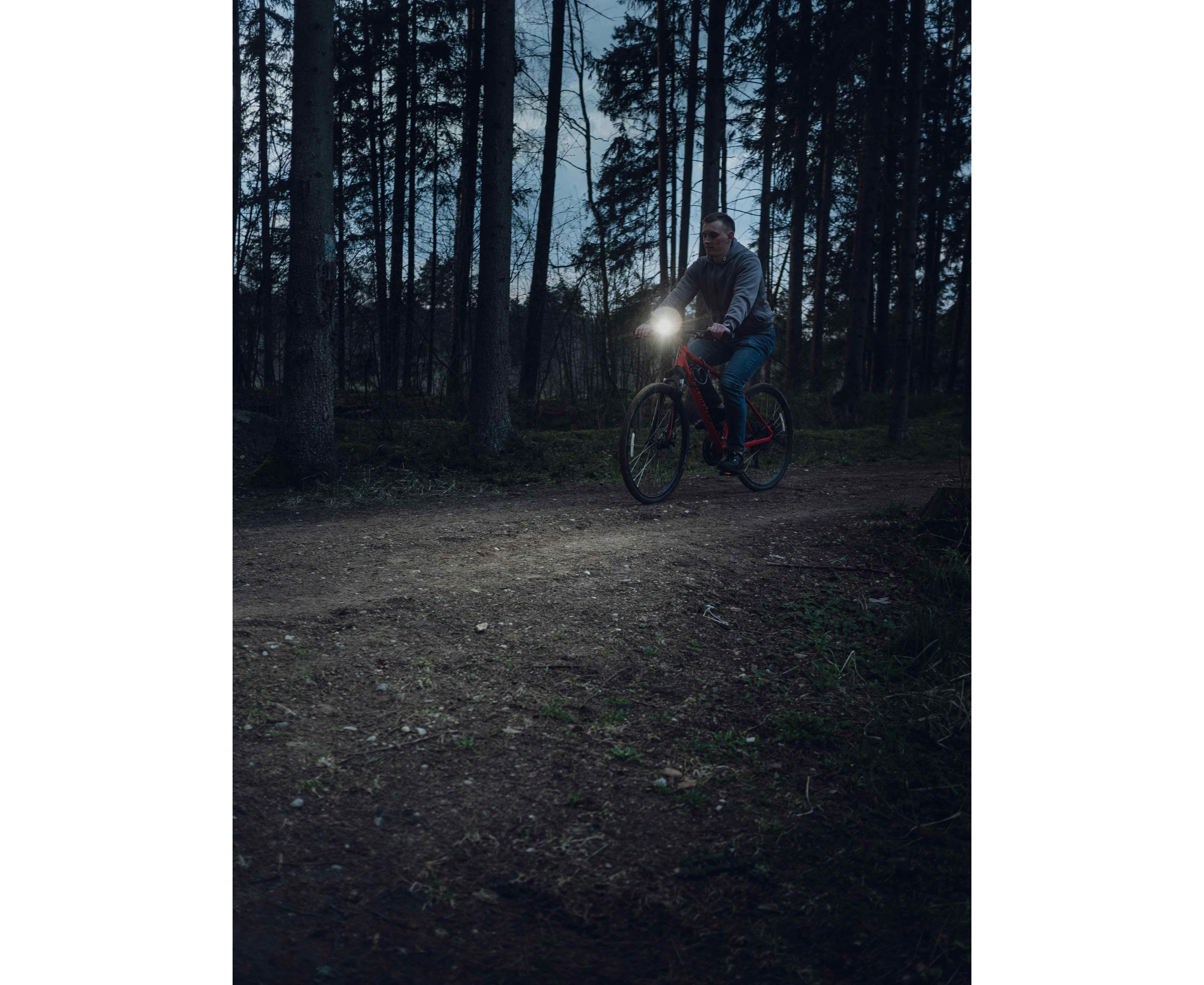 Red light with 230 lumens is effective in limited visibility conditions, for maintaining night vision when interchanging between turning the light on and off, as a rear bike light or a warning beacon.