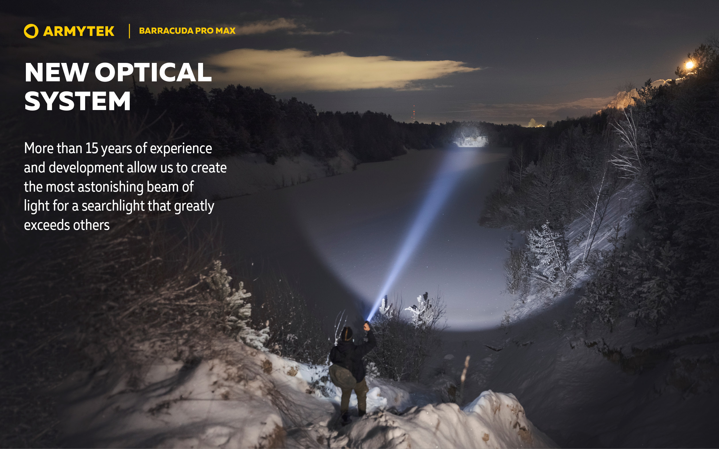 - Pro Max New generation electronics provides impressive throw distance of 1000 meters and light output of 2800 lumens. Constant brightness even at -40 °C and not fully charged battery.