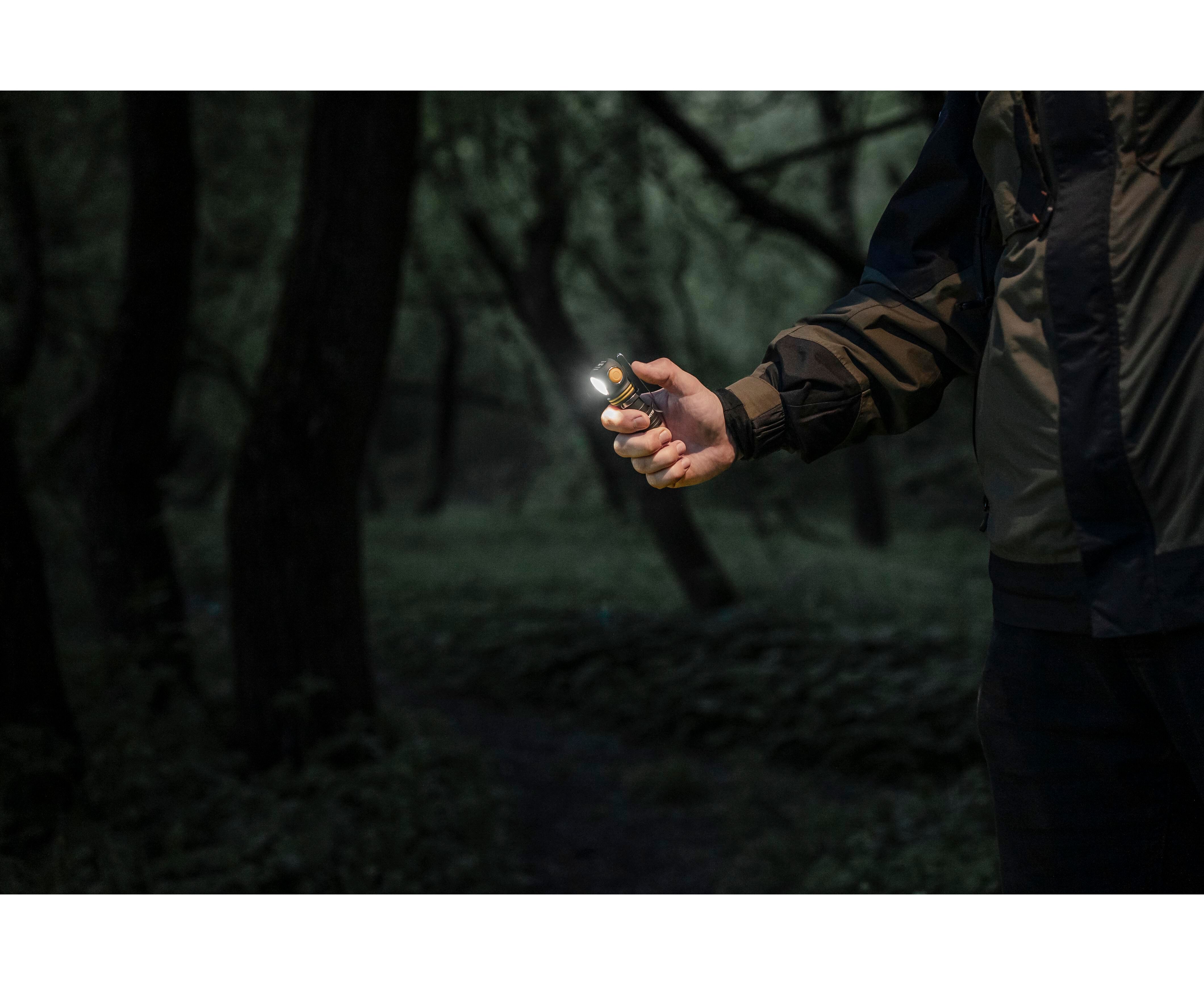 Elf C1 will become a great solution for an evening walk, late night jogging, when hiking, hunting or fishing. It is also compatible with bicycle mount ABM-01 and universal hard hat mount AHM-02.
