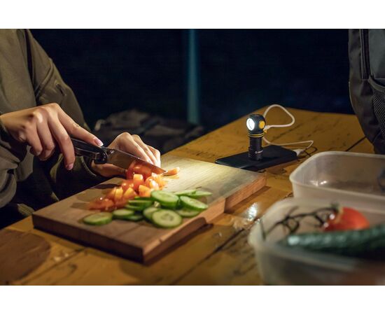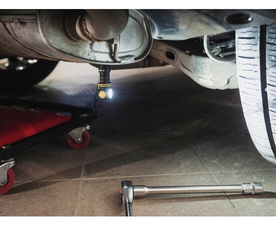 The flashlight can be used together with a headmount, fixed to clothes with a clip, as well as installed on metal surfaces thanks to the built-in magnet. Moreover, a special hole in the tailcap allows carrying Elf C1 along with the keys. The model is also compatible with optional AHM series hard hat mounts for industrial works and mountaineering.