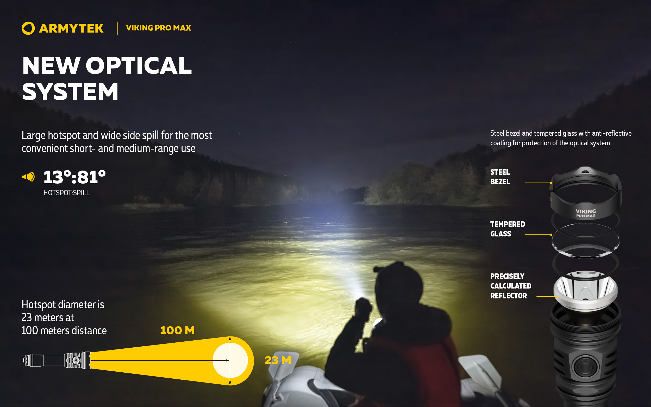- Large hotspot and wide side spill for the most convenient short- and medium-range use.