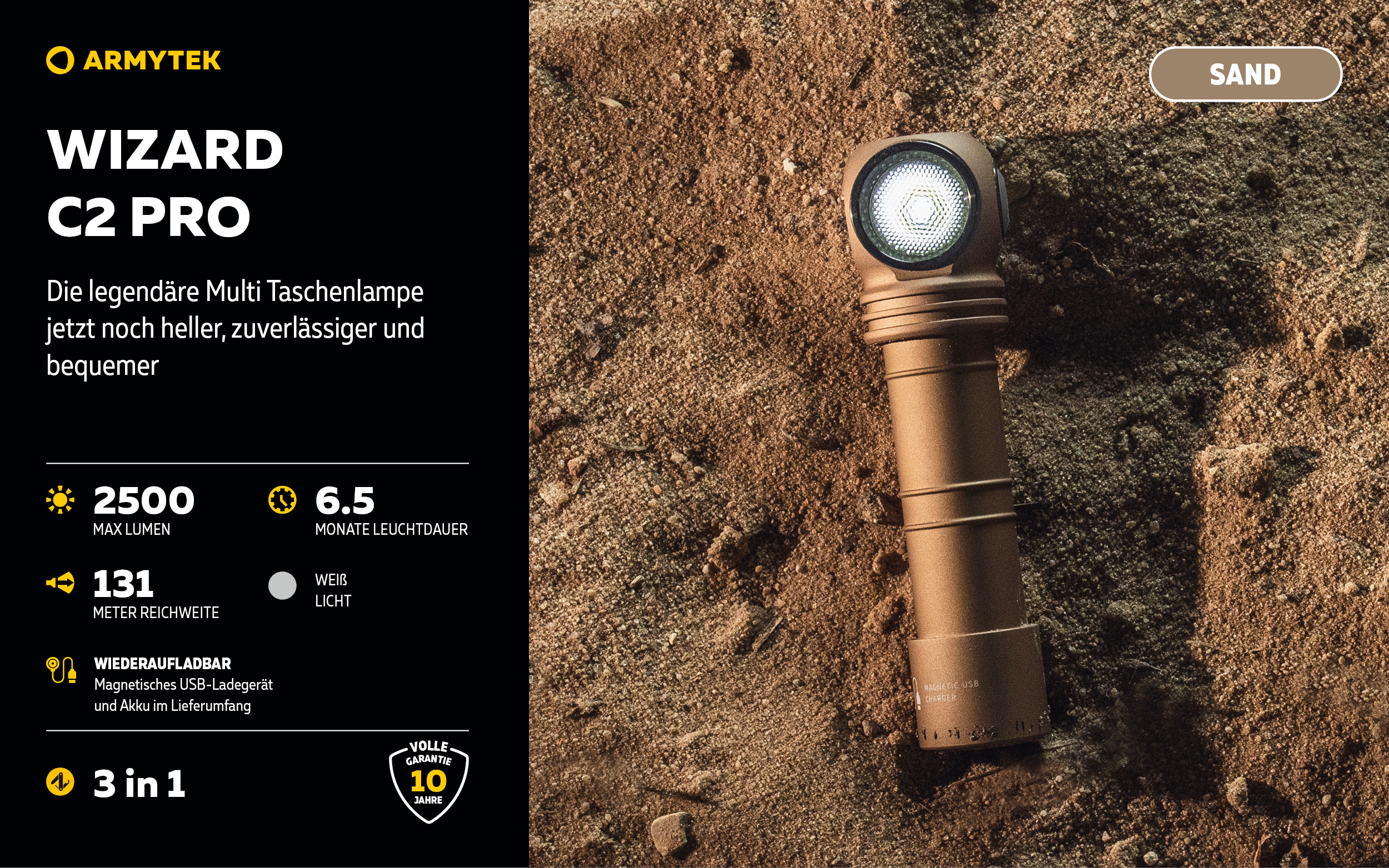 WIZARD C2 PRO — Multi Taschenlampe 3 in 1