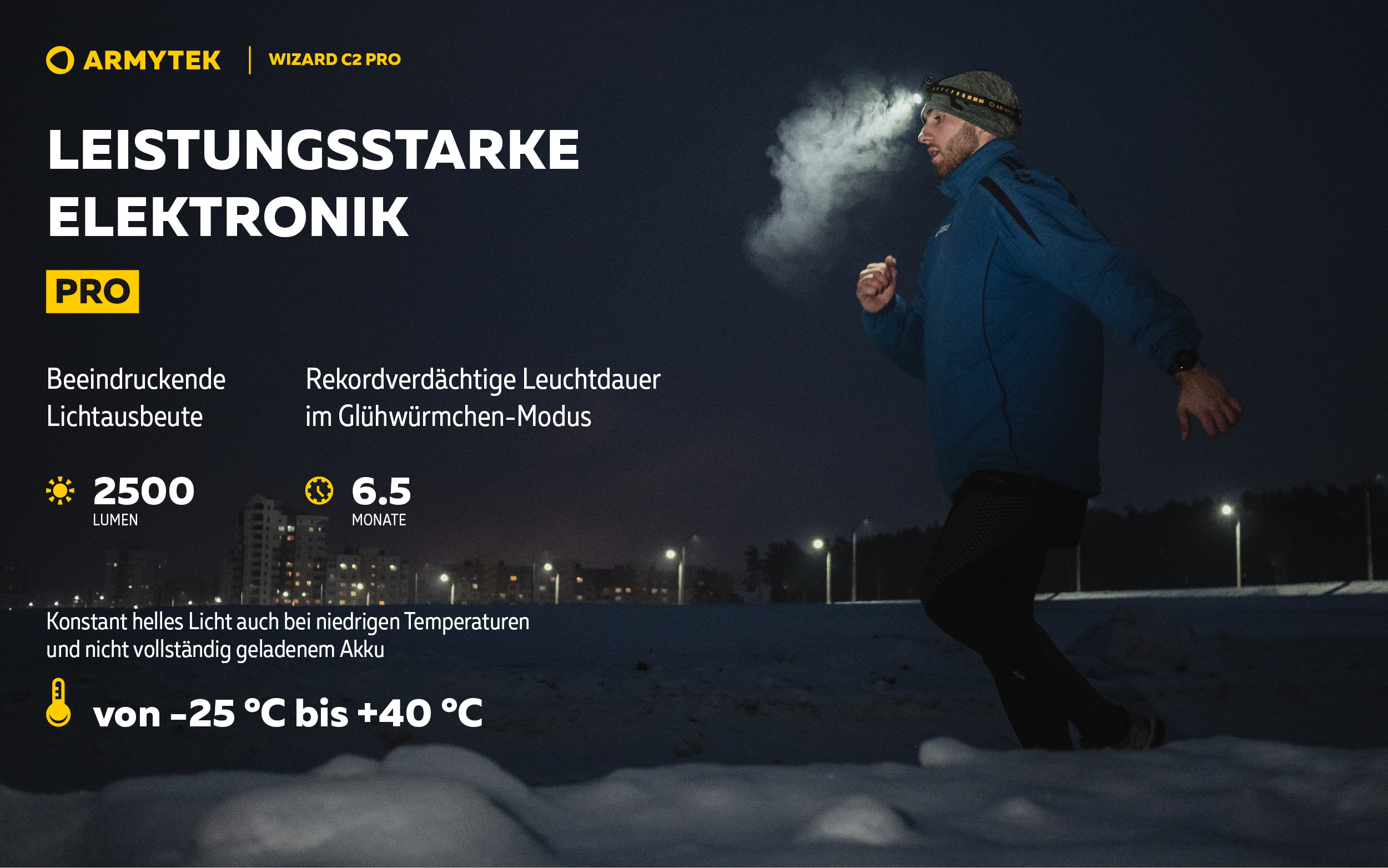 - Pro Die leistungsstarke Elektronik gewährleistet eine beeindruckende Lichtausbeute und rekordverdächtige Leuchtdauer. Konstant helles Licht auch bei niedrigen Temperaturen und nicht vollständig geladenem Akku.