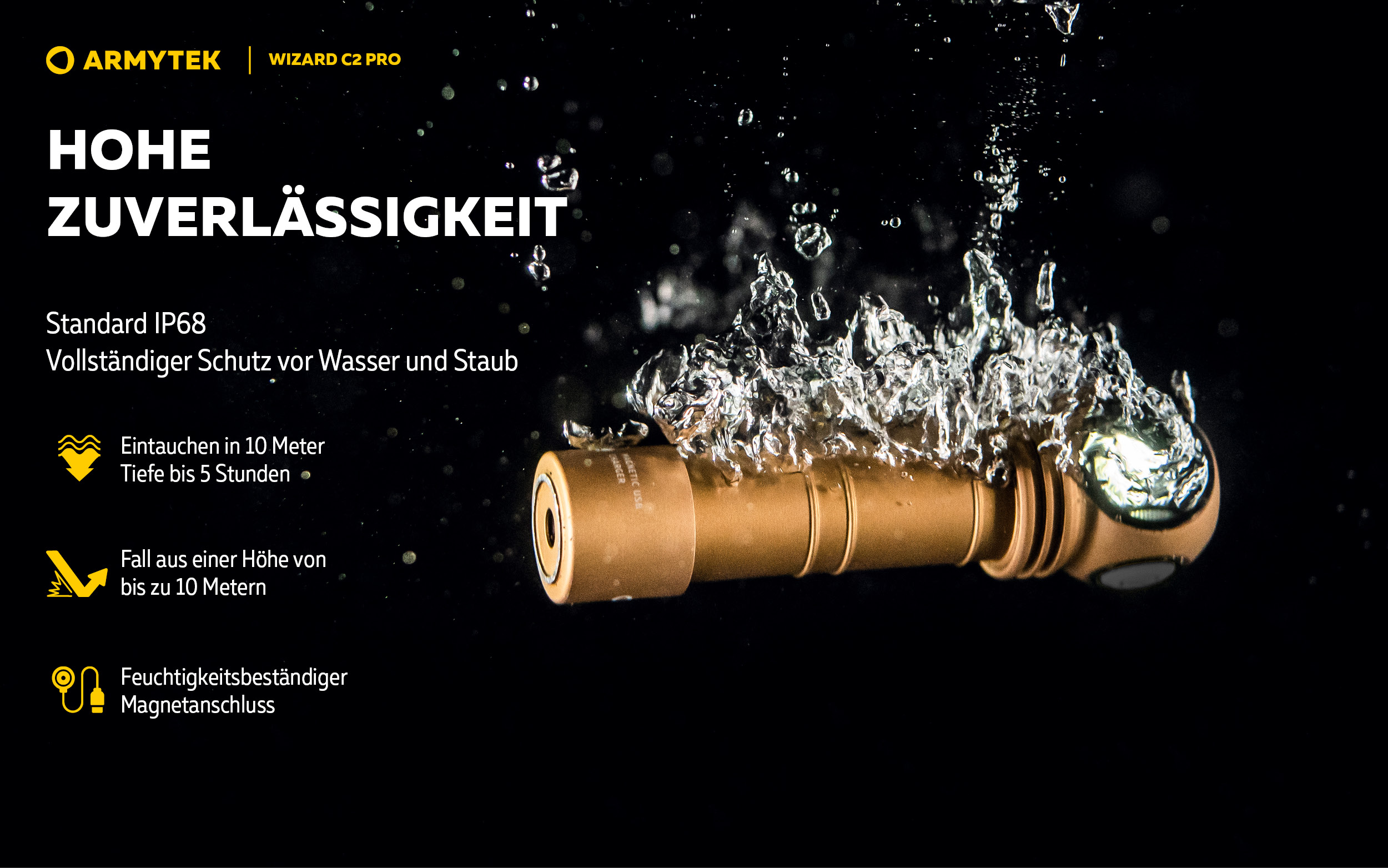 - Zuverlässiger und wasserdichter Magnetanschluss.
