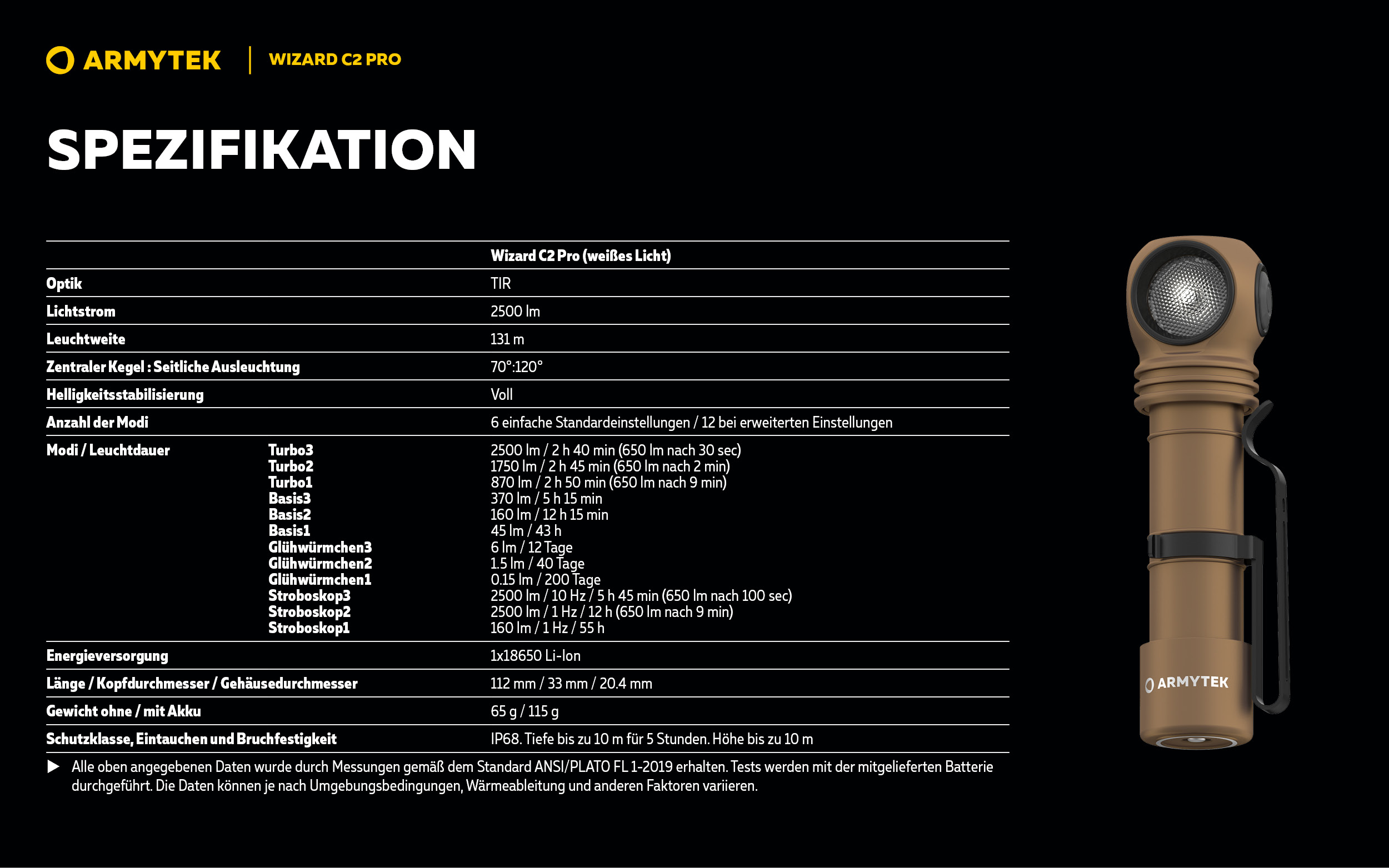 | Turbo 1 | 870 lm / 2 h 50 min (650 lm nach 9 min) |