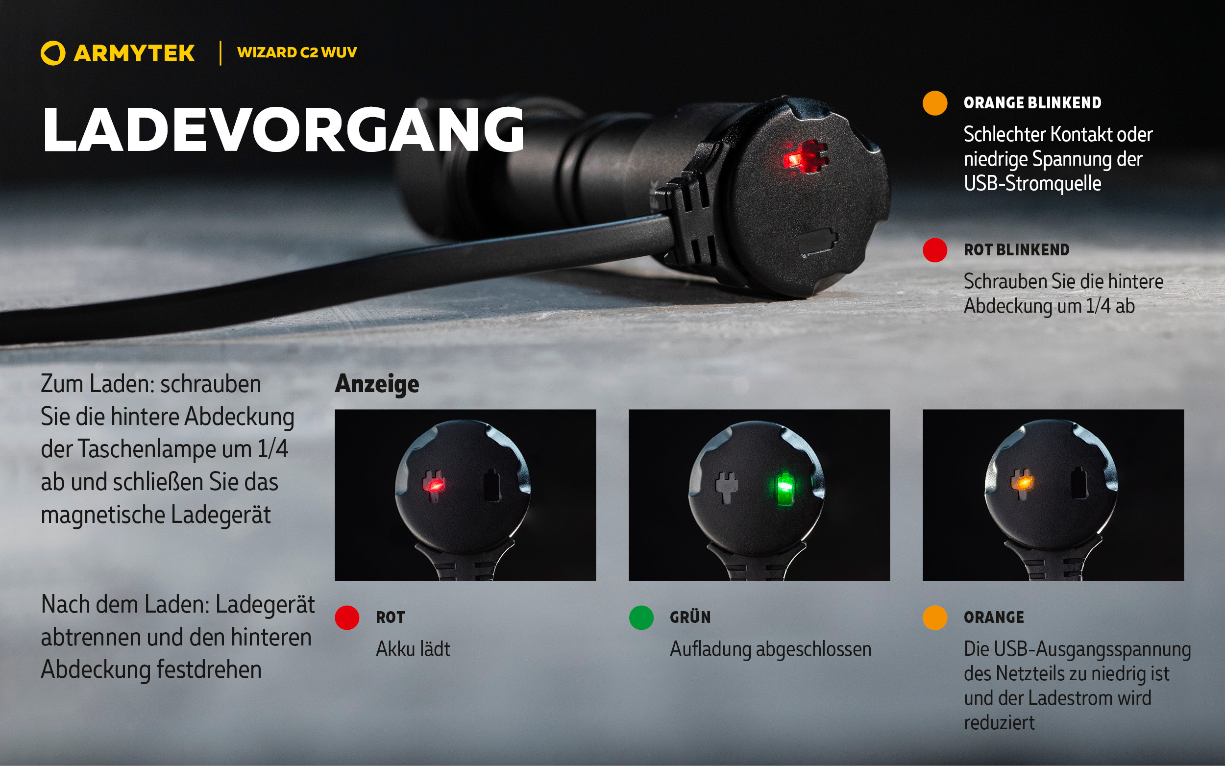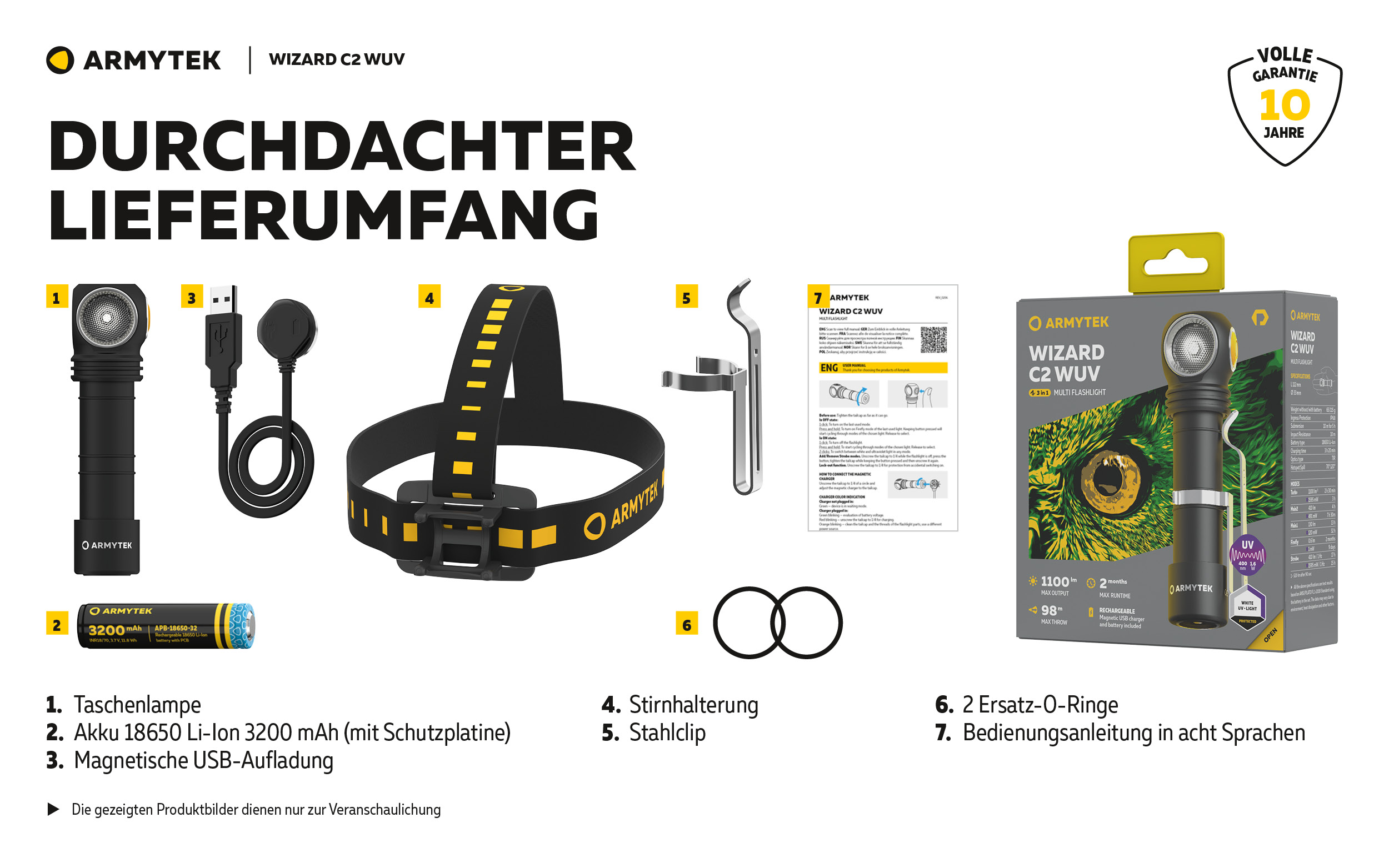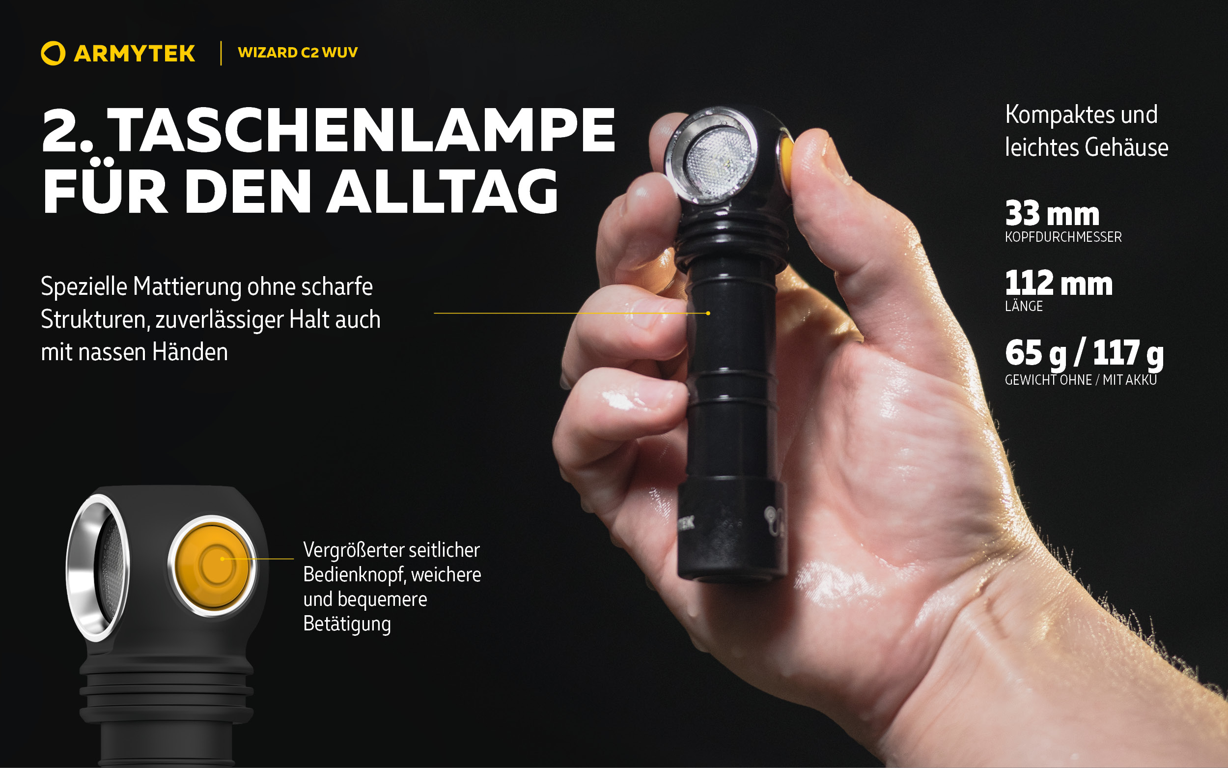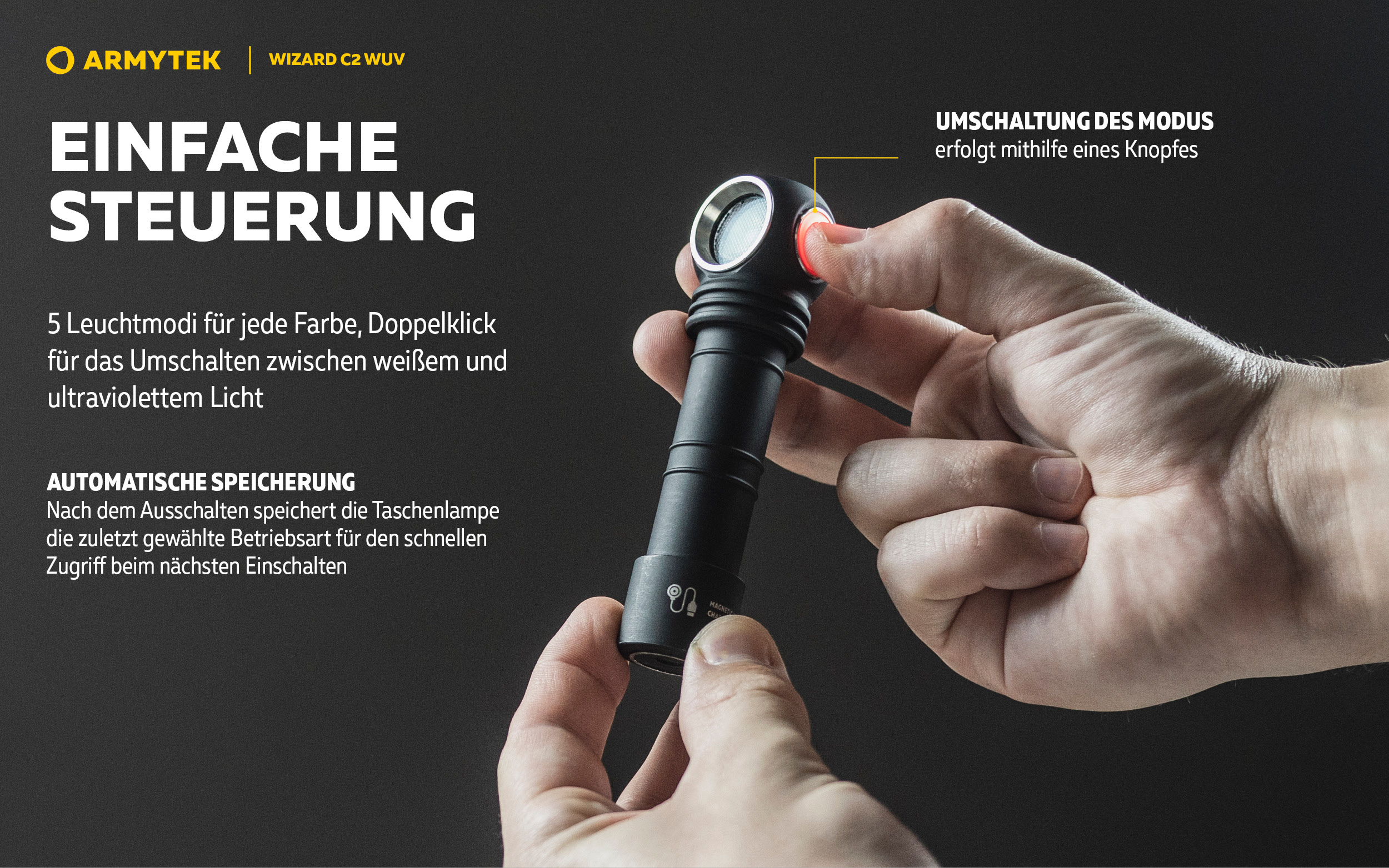 Die Wizard C2 WUV ist eine einzigartige Multifunktionslampe mit vier Leuchtdioden für beeindruckendes weißes und UV-Licht.