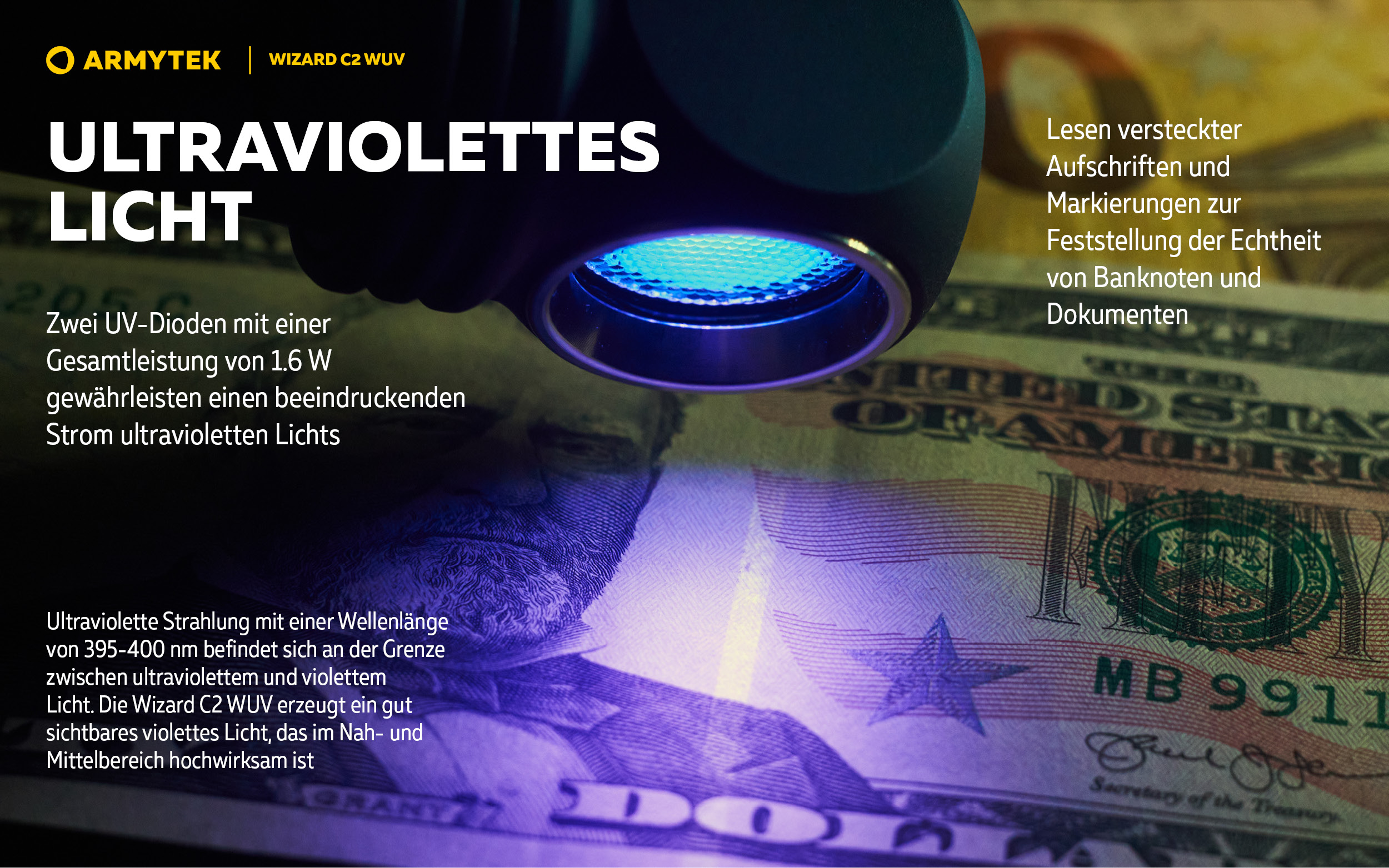 Armytek Wizard C2 WUV — additional ultraviolet light for professional tasks