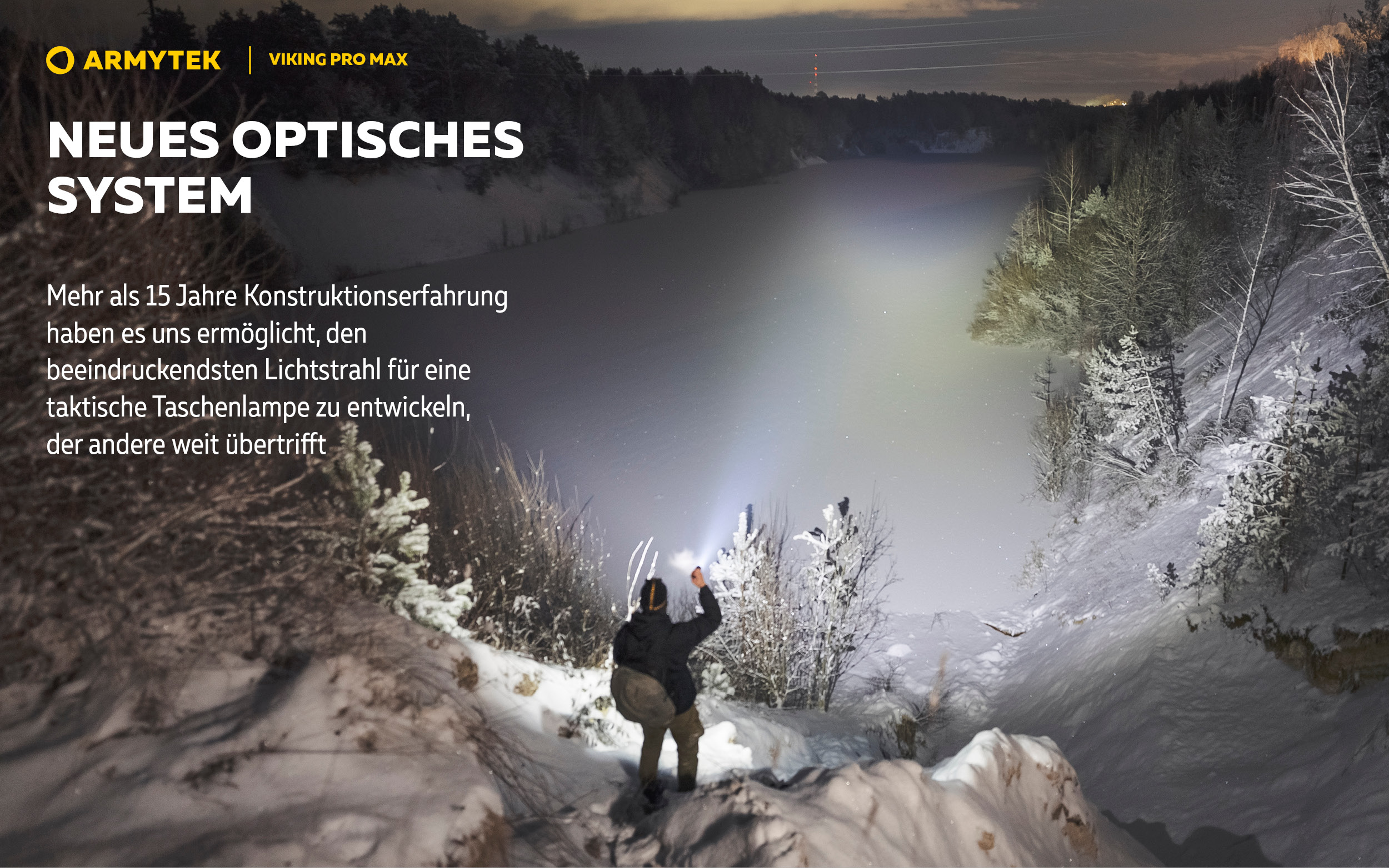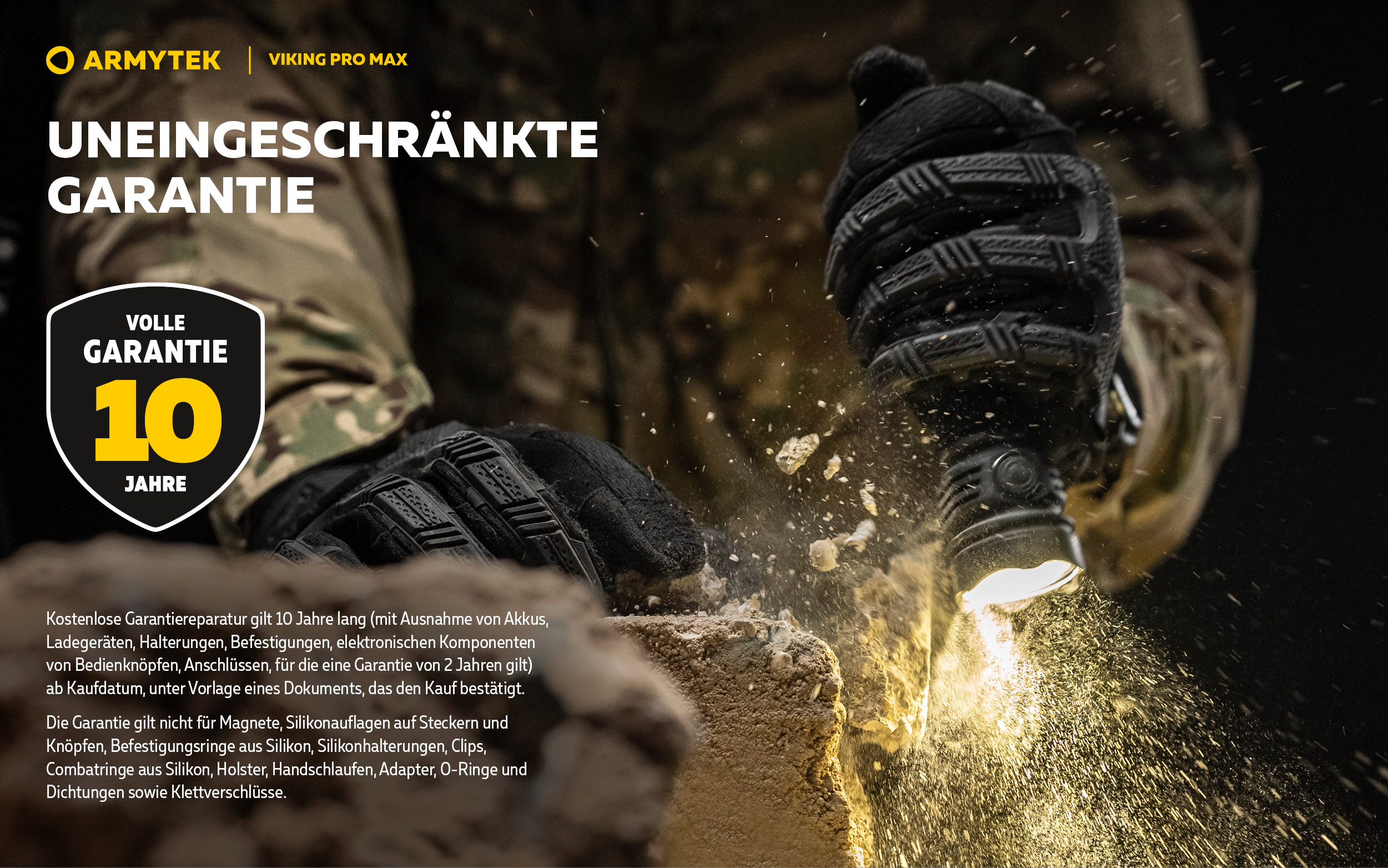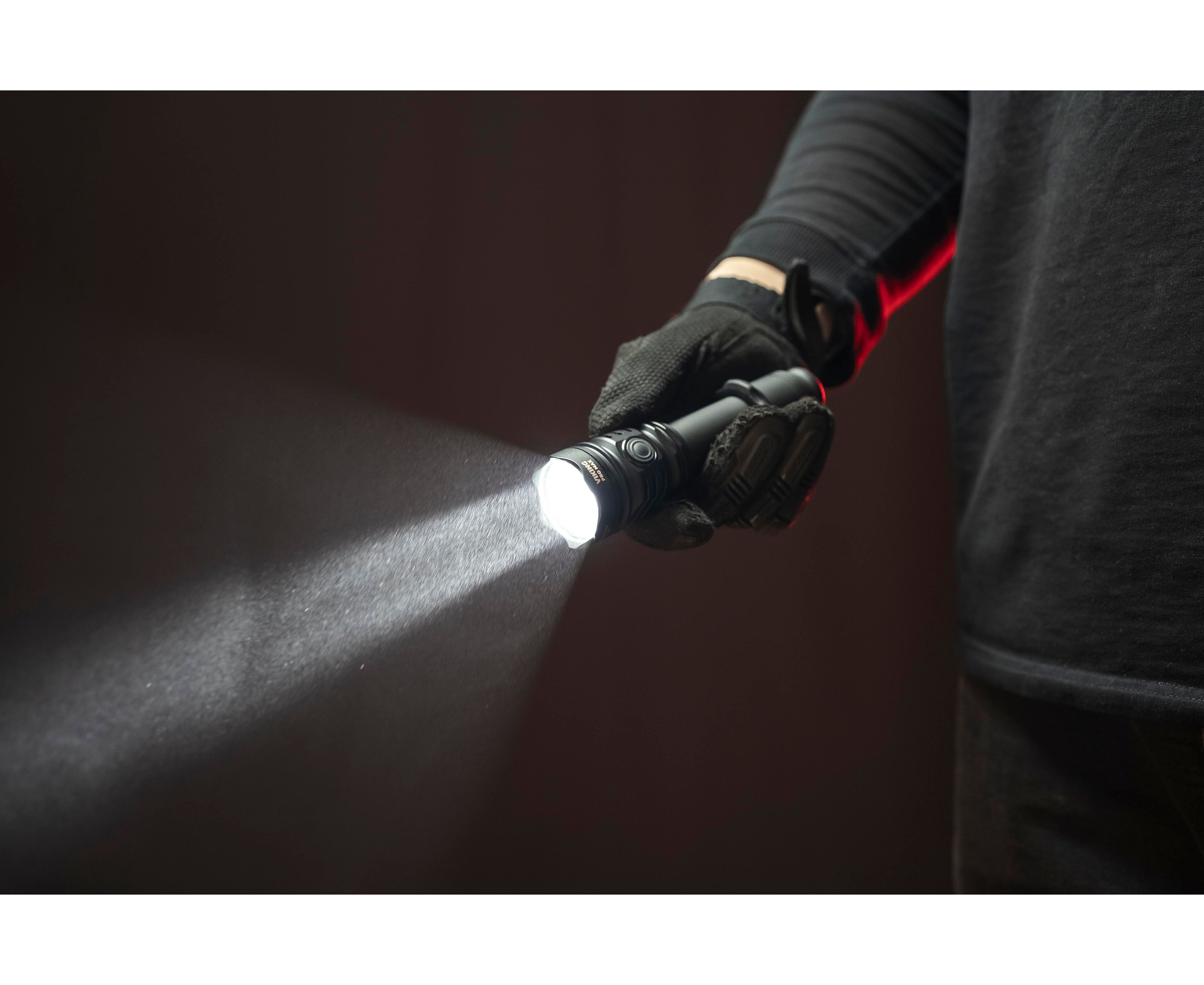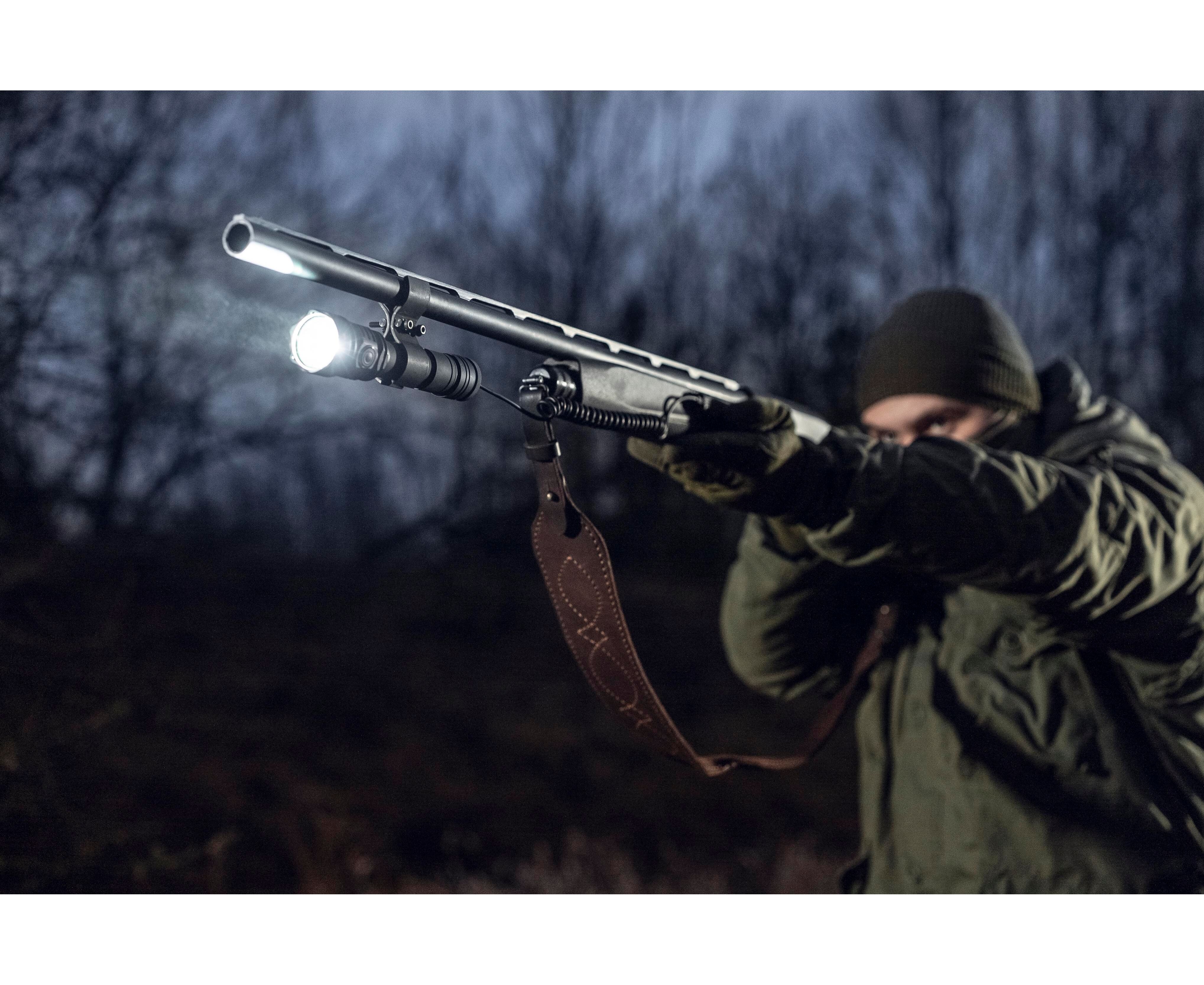 Viking Pro Max ist eine taktische Taschenlampe mit beeindruckenden 5300 Lumen für spezielle Aufgaben und die Jagd. Der große zentrale Lichtkegel und die breite seitliche Ausleuchtung prädestinieren die Viking Pro Max als beste Wahl für den Einsatz auf kurze und mittlere Distanzen. Die optimale Wahl für die Ausleuchtung von großen Flächen im offenen Gelände und in großflächigen Innenräumen. Zwei Bedienknöpfe ermöglichen den schnellen Zugriff auf die gewünschten Modi, wenn die Taschenlampe als handgehaltene Taschenlampe verwendet wird.