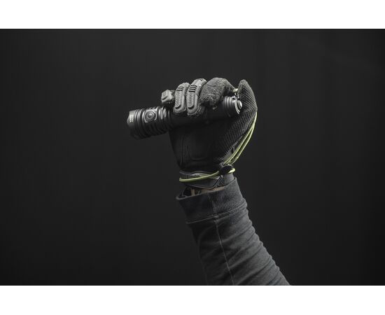 Einstellbare Handschlaufe aus hochfestem Paracord mit Stahlkarabiner zur schnellen Anbringung an der Lampe.